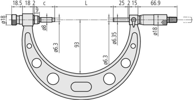 Mitutoyo nem-digitális mikrométer könnyen cserélhető ülékkekel biztosít szélesebb mérési tartományt egy eszközzel. A racsnis zár garantálja a mérés ismételhetőségét.