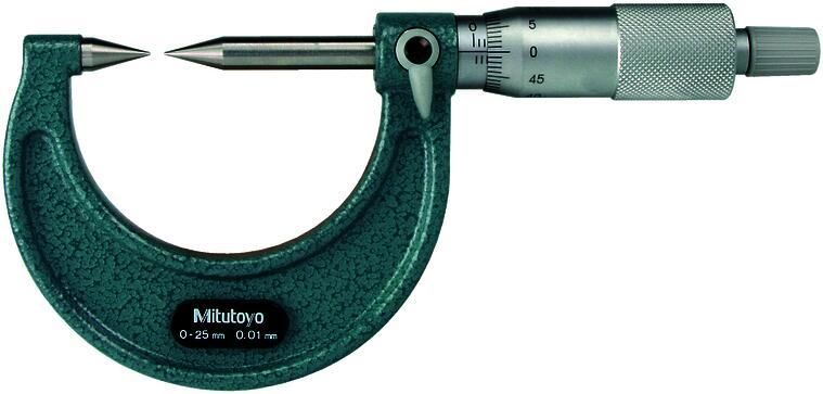 Hegyesvégű mikrométer hornyok, lépcsők méréséhez. Jellemzői: Hegyes ülék és orsó. Hornyok, lépcsők, és hasonló feladatokra