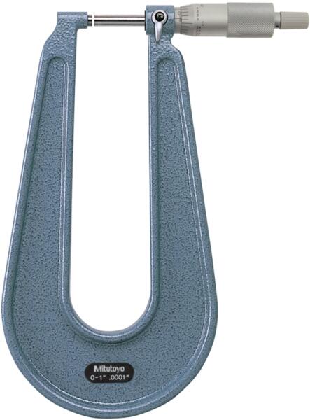 Mitutoyo nem -digitális mikrométer mély kengyellel, amely lehetővé teszi a lemezvastagság mérést a lemez szélétől távolabbi helyeken is, ahol standard mikrométerrel már nem lenne lehetséges. Racsnis zár garantálja a mérési művelet ismételhetőségét.