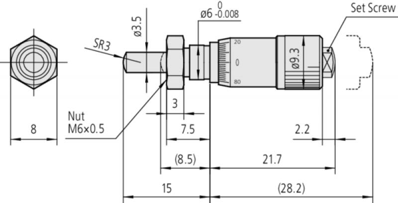 Digitális/Analóg: AnalógColl-mm: MetrikusTartomány: 0 - 6.5 mmGraduation: 0.002 mmMaximum Permissible Error J MPE: ±5 mOrsóvég: Spherical (SR3)Orsóemelkedés: 0,1 mmCsap Ø: 6 mmSzár: w/ clamp nutKészülék vastagság rögzítő anyához: 4 mmMérési felület: Hardened steel (> 60 HRC)Tömeg: 10 g