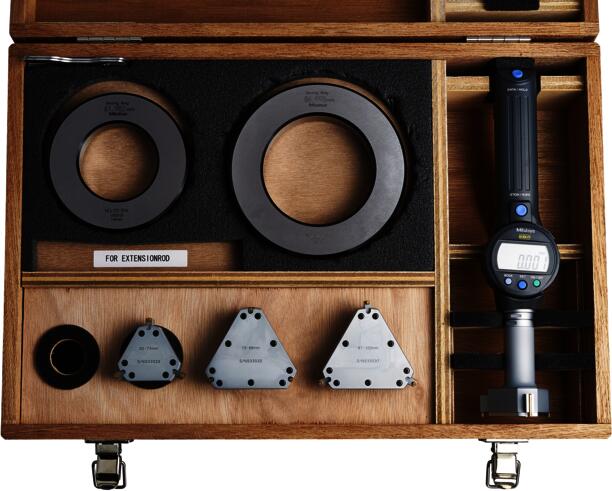 • 3-ponton mérő Digimatic furatmérő készlet egy alaptesttel és cserélhető mérőfejekkel.