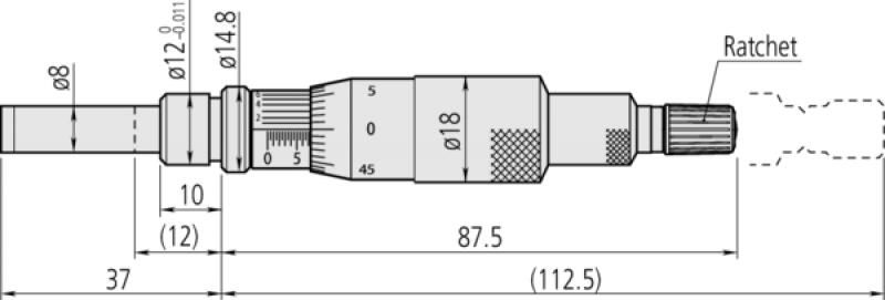 Mitutoyo Beépíthető mikrométer álló orsóval és racsnis stoppal (153-206)