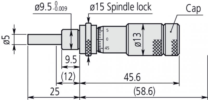 Standard kisméretű beépíthető mikrométer nullázó dobbal. Jellemzői: Tetszőleges pozícióban beállítható nullpont.