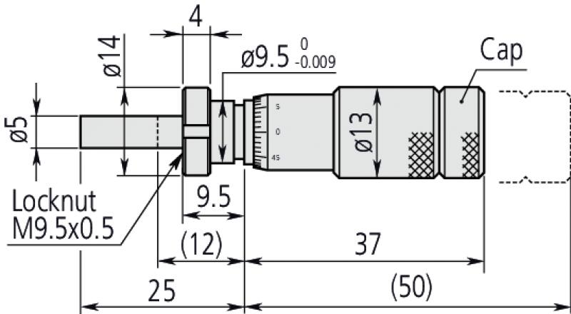 Standard kisméretű beépíthető mikrométer nullázó dobbal. Jellemzői: Tetszőleges pozícióban beállítható nullpont.