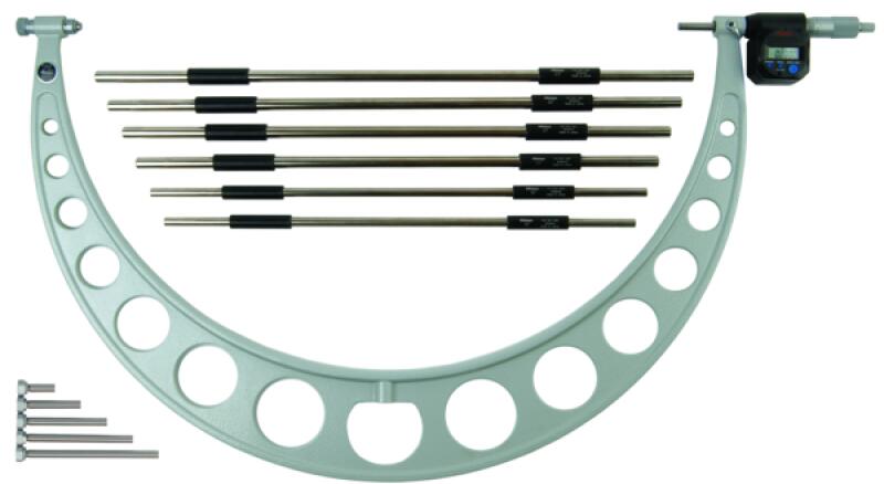 Mitutoyo digitális mikrométer könnyen cserélhető ülékekkel biztosít szélesebb mérési tartományt egy műszerrel. Racsnis zár garantálja a mérések ismételhetőségét. Digimatic adatkimenet.