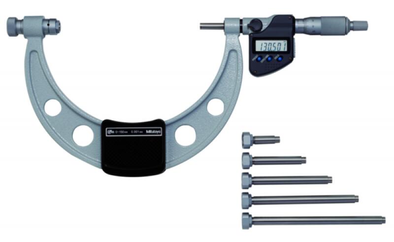 Digimatic mikrométer extra nagy méréstartománnyal. Jellemzői: Cserélhető ülékkel a széles alkalmazhatóság érdekében. Racsnis stop az állandó mérőerőhöz
