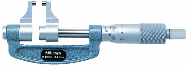 Mitutoyo nem digitális mikrométer mérőcsőrökkel, amelyek lehetővé teszik a méréseket kisebb méretű helyeken is. Racsnis zár garantálja a mérések ismételhetőségét.