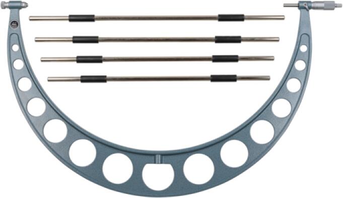 Mitutoyo nem-digitális mikrométer könnyen cserélhető ülékkekel biztosít szélesebb mérési tartományt egy eszközzel. A racsnis zár garantálja a mérés ismételhetőségét.