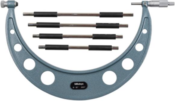 Mitutoyo nem-digitális mikrométer könnyen cserélhető ülékkekel biztosít szélesebb mérési tartományt egy eszközzel. A racsnis zár garantálja a mérés ismételhetőségét.
