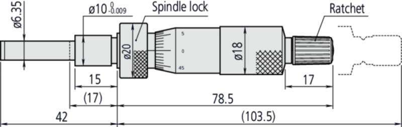 Standard, közepes méretű beépíthető mikrométer, amely a következő előnyöket kínálja: Sima szár sík orsóvég Keményfém orsóval